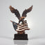The sculpture is finely crafted, with intricate hand-painting and a gleaming bronze finish. It is a great gift for anyone who loves the outdoors, eagles and American symbols.